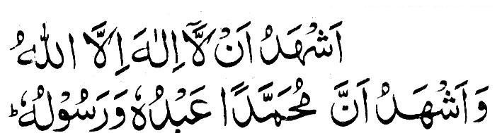 “Ashhadu an laa ilaaha ill-Allaah wahdahu laa shareeka lah, wa ashhadu anna Muhammadan ‘abduhu wa rasooluhu (I bear witness that there is no god except Allaah alone with no partner or associate, and I bear witness that Muhammad is the Messenger of Allah),”